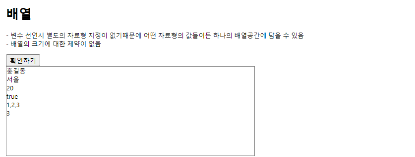 - new연산자와 Array 객체를 통해 배열을 선언할 수 있음