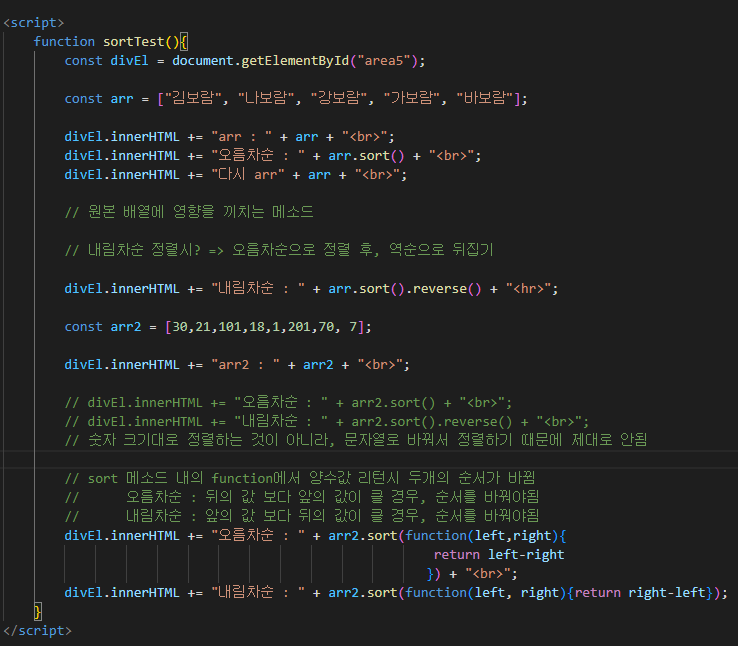 * 배열.sort() : 배열안에 담긴 값들을 정렬시켜주는 메소드