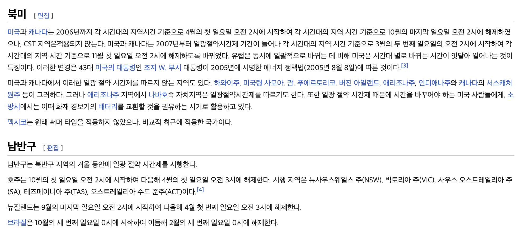 -> 나라마다 적용되는 기간 약간의 차이가 있지만 통상 3월 중순 ~ 11월 초이다.