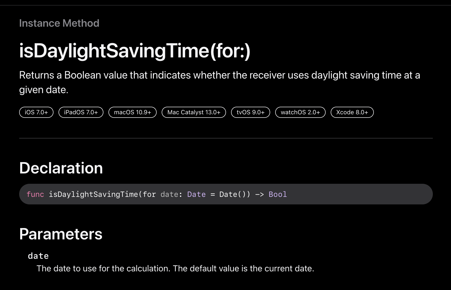 isDaylightSavingTime를 사용해 나타 낼 수 있겠다.