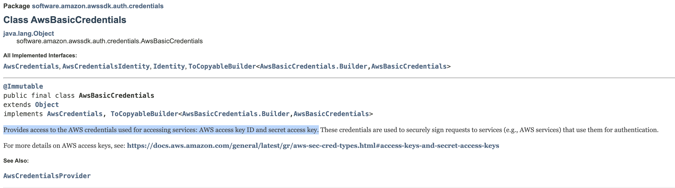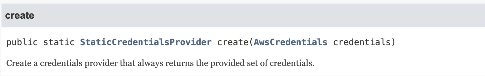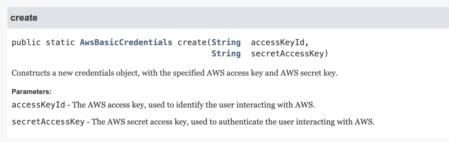 AwsBasicCredential는 AwsCredentials를 상속받기 때문에, create()문 안에 들어갈 수 있다.