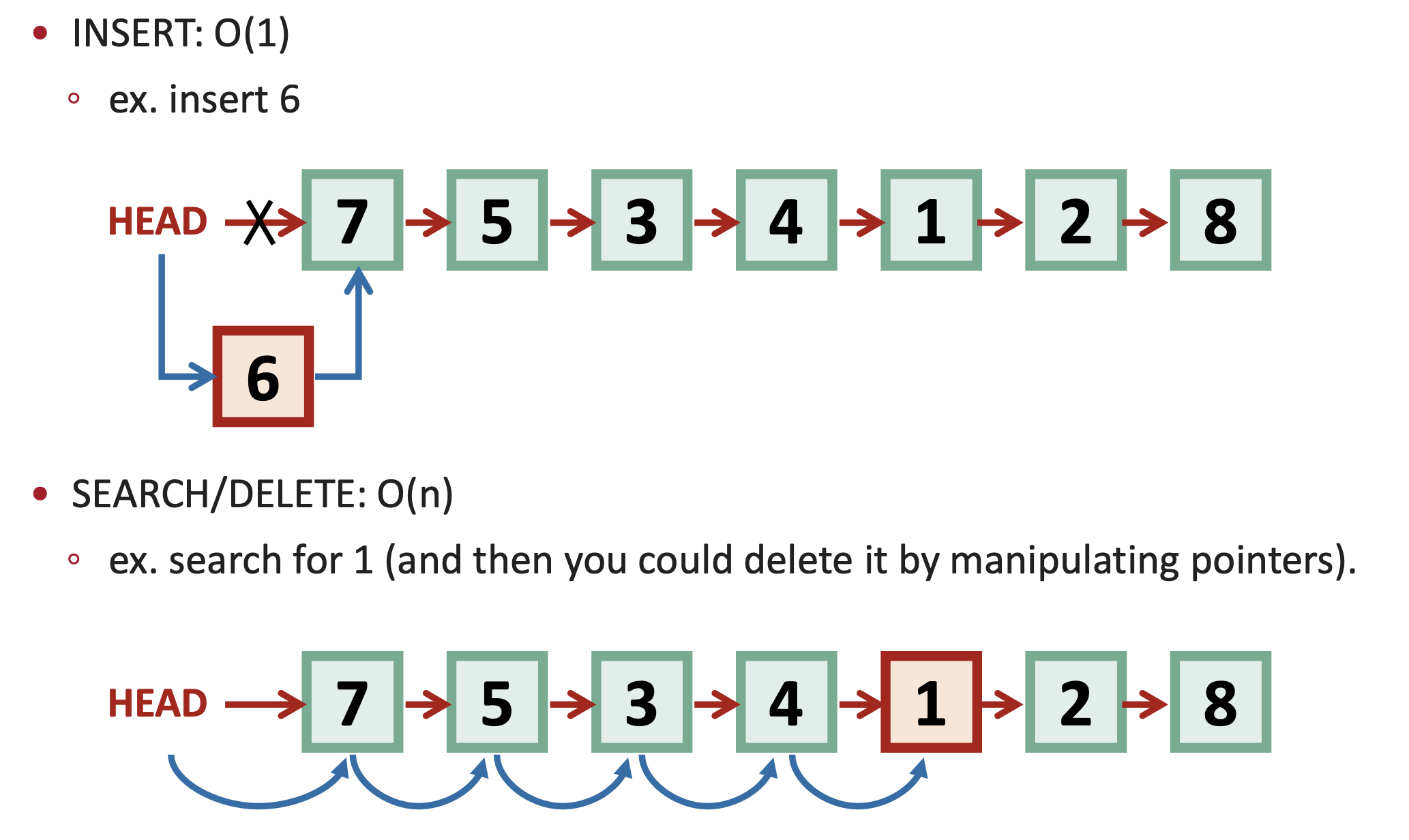이유: 연결 리스트는 인덱스로 접근할 수 없기 때문에, 맨 앞부터 순차적으로 탐색해야 한다.