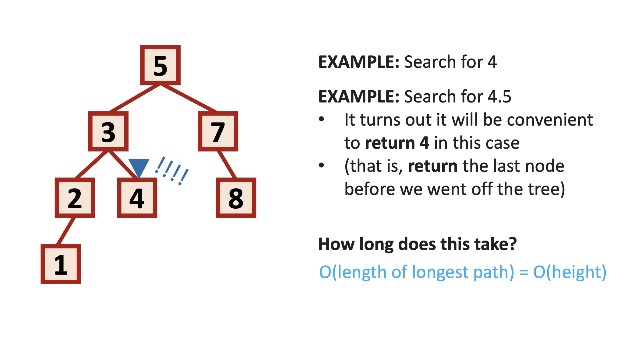 BST에서 탐색은 트리의 루트부터 리프까지 가는 경로 중 하나를 따르므로,
