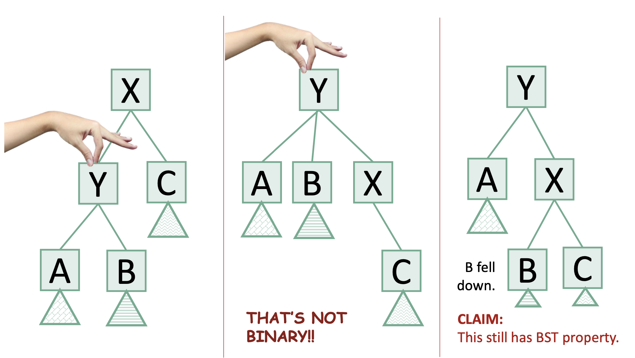 BST의 성질을 깨뜨리지 않으면서도, 노드들의 위치를 회전시켜서 트리의 높이를 줄이거나 균형을 맞춘다!