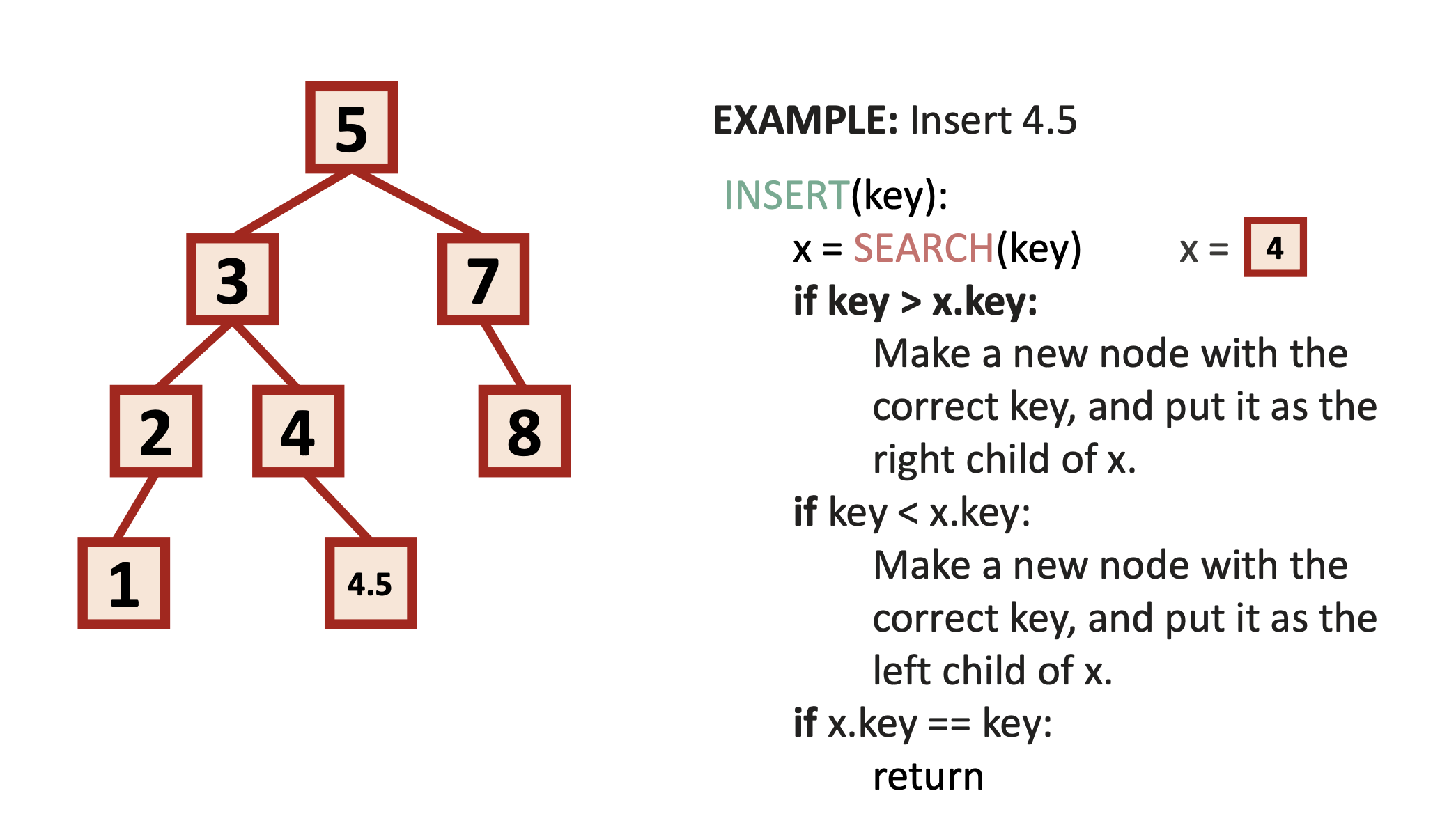 SEARCH(4.5) → 마지막으로 도달한 노드는 4