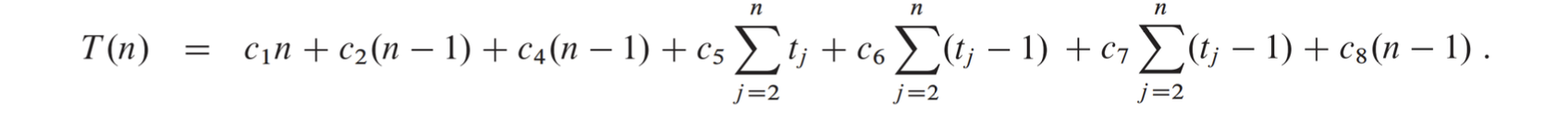 = 1이 될 수 있을 것이고, 반대로 A[j]가 정렬된 부분 리스트의 맨 앞으로 이동해야 한다면, while 루프가 여러 번 실행될 수 있고, 그러면 tⱼ