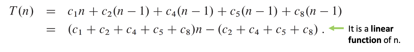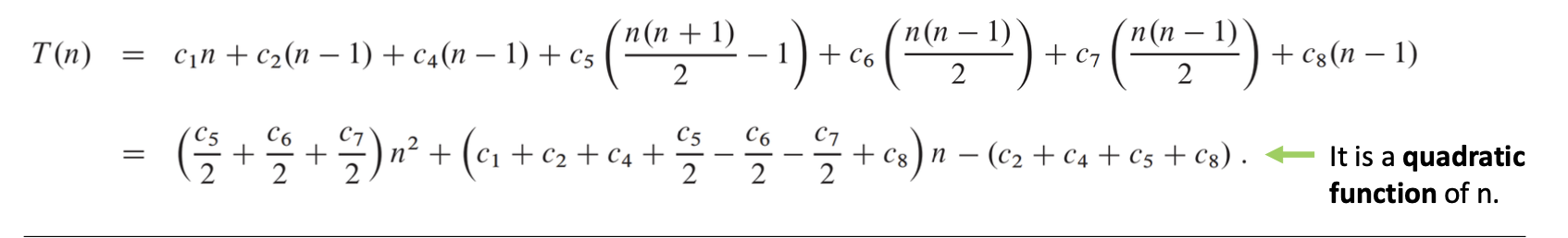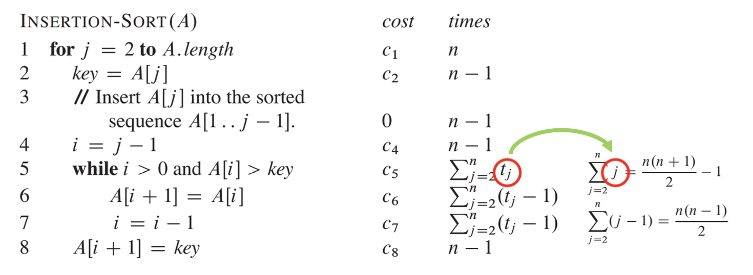 결과적으로, 삽입 정렬의 총 실행시간은 모든 cost