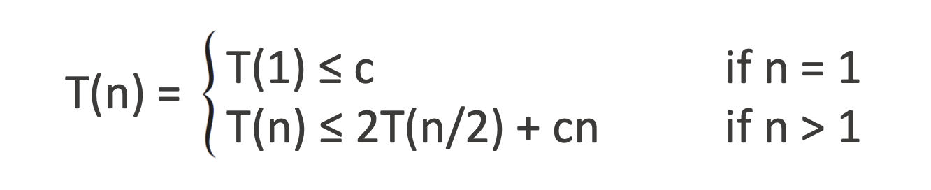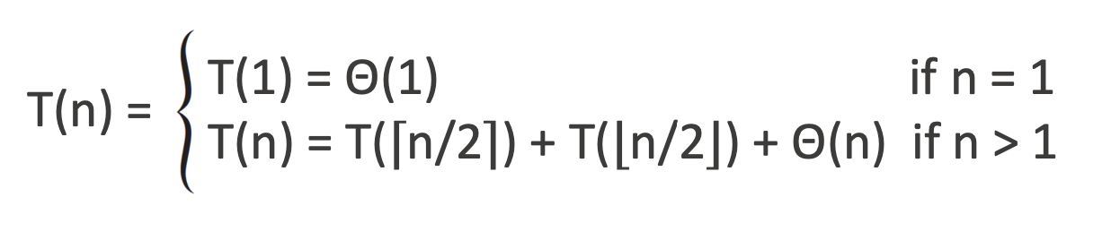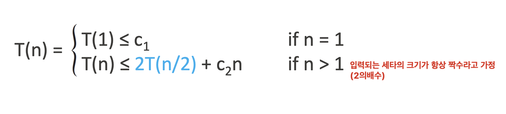 지금까지 배운 내용들을 토대로 Merge Sort의 점화식을 수학적으로 나타낸 것이다