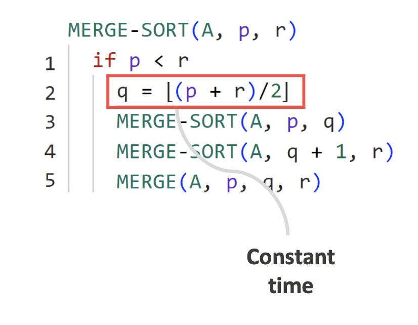 즉, 중간 인덱스 q = ⌊(p + r)/2⌋를 계산하는 부분을 의미!