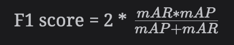따라서 mAP 및 mAR을 기반으로 한 F1 점수는 모델의 품질을 측정하는 데 상당히 좋은 오프라인 방법이다.
