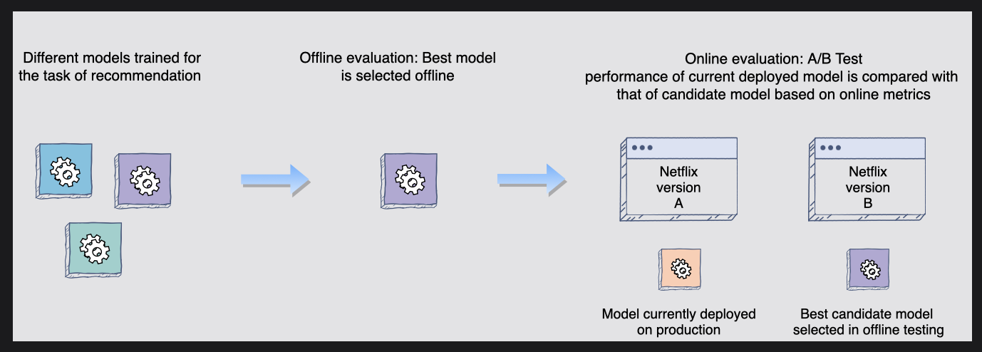 그 모델의 성능 향상이 프로덕션 환경으로 가져오기 위한 기술적 노력에 충분한 가치가 있다면, 가장 성능이 우수한 모델이 실시간 데이터에 대한 온라인 A/B 테스트를 위해 선택될 것이다.