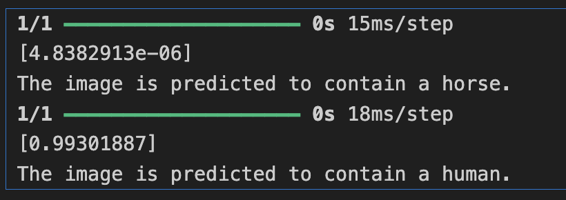 예를 들어, '말' 디렉토리와 '인간' 디렉토리를 포함하는 '훈련' 디렉토리가 있습니다. ImageDataGenerator는 이미지에 적절하게 레이블을 지정하여 코딩 단계를 줄여준다.