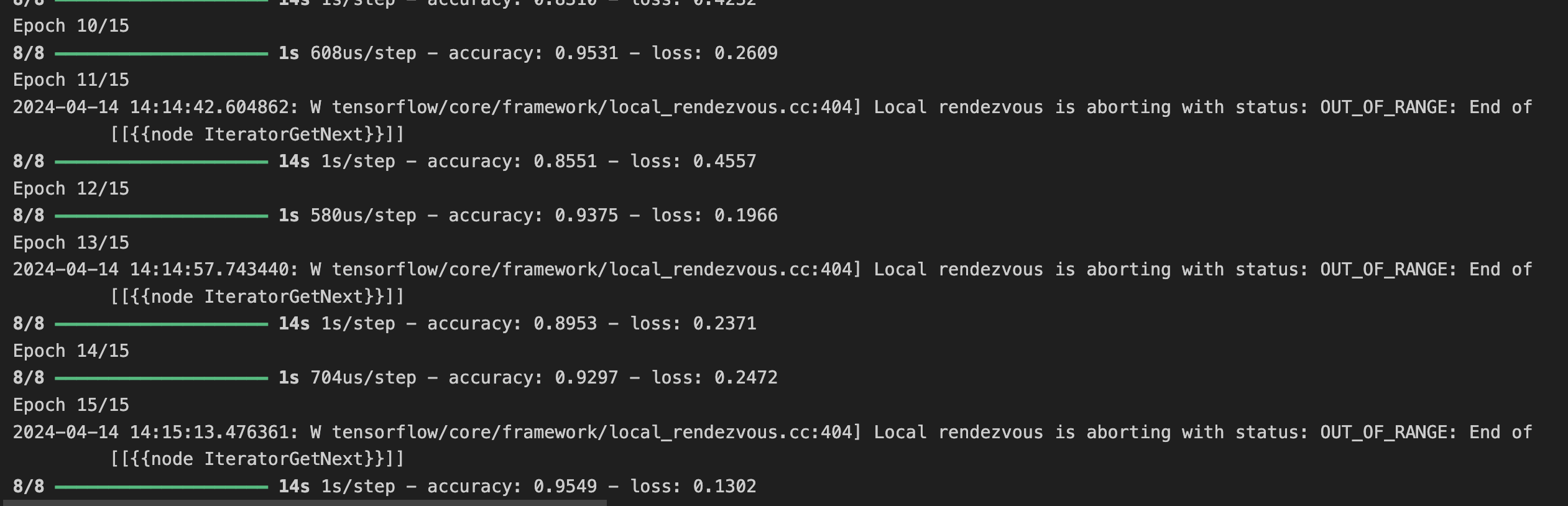 그런 다음 이전 예제에서와 같이 컨벌루션 레이어를 추가하고 최종 결과를 평면화하여 조밀하게 연결된 레이어에 공급한다.