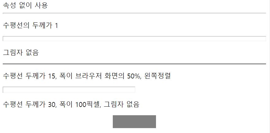 수평선 두께 15, 폭이 브라우저 화면의 50%, 왼쪽정렬