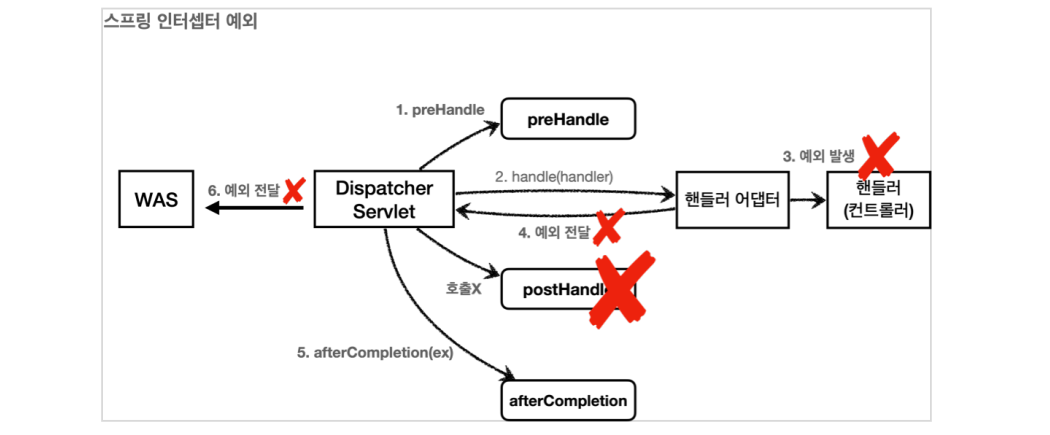 postHandle : 컨트롤러에서 예외가 발생하면 호출되지 않음