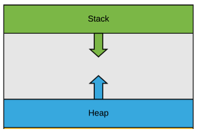 스택은 위 주소부터 할당되고 힙은 아래 주소부터 할당된다