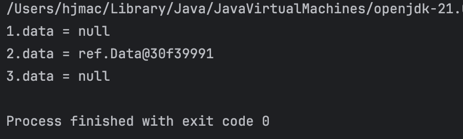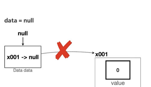 마지막에는 다시 null 할당했다. 그러면 앞서 만든 Data 인스턴스를 더는 참조하지 않는다.