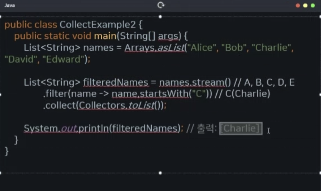 예제2 : 이름이 "C"로 시작하는 요소만 필터링하여 리스트로 반환하기