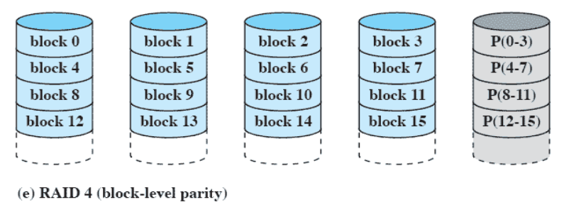 - 다른 block 에서는 1번씩 쓰기를 하는데 parity block은 4번 쓰기작업