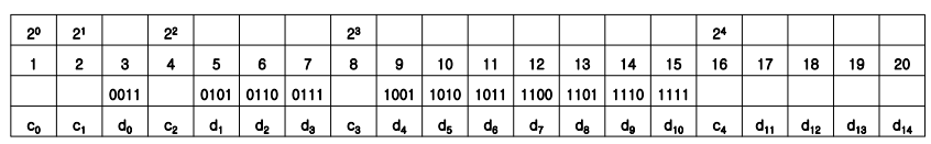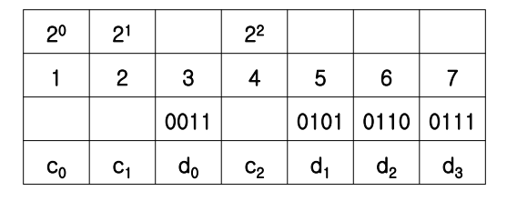 - 2의 제곱에 해당하는 숫자는 Code ⇒ C0, C1, C2, 해당하지 않는 숫자는 Data ⇒ d0, d1, d2, d3