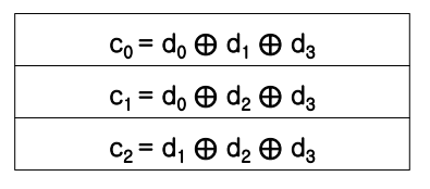 - c0 = d0 XOR d1 XOR d3 : 가장 아랫자리가 1인 3명