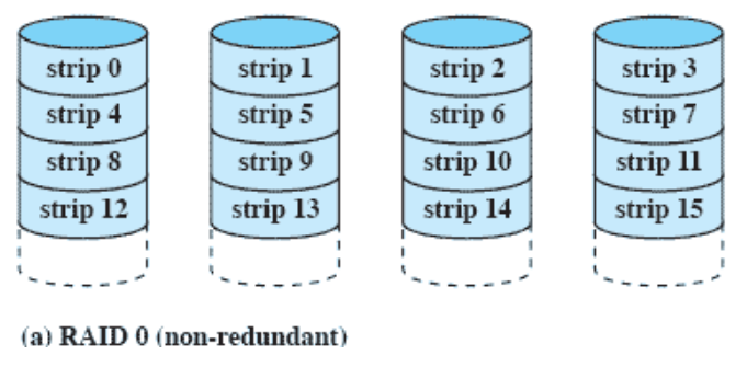 - 파일을 strip 단위로 나눠서 여러개 하드디스크에 저장