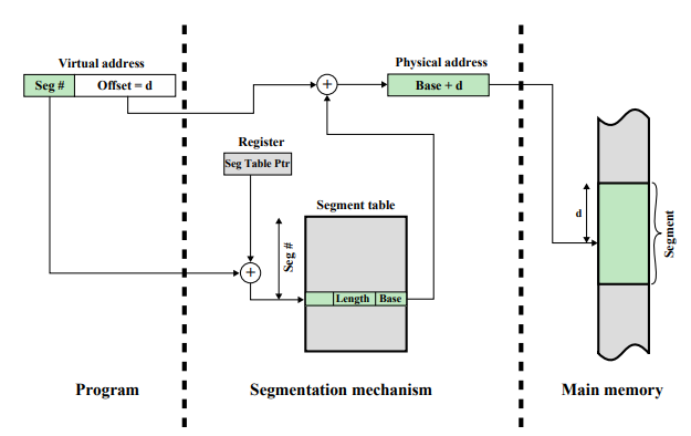 세그먼트 테이블에 length와 base가 포함이 되어야 한다. length는 세그먼트의 길이이고 base는 세그먼트의 시작주소이다.