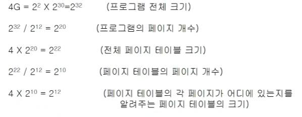 4G의 프로그램은 개의 페이지 개수를 가진다. 그럼 전체 페이지 테이블의 엔트리가 개이다.