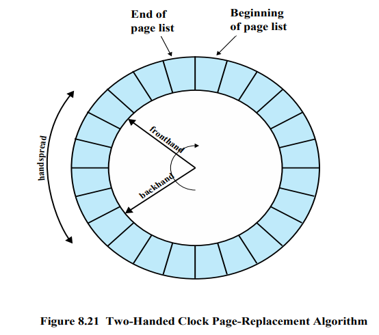 유닉스에서는 페이지를 교체하는 시점에서 바늘이 움직이는 것이 아니라 평상시에 OS가 할 일이 없을 때 바늘을 움직인다. 그래서 reference bit가 0인 페이지를 미리 찾아서 Paged-out 리스트를 만든다.
