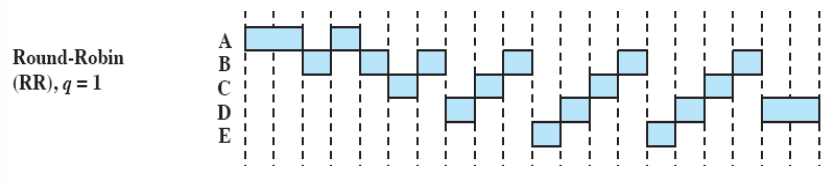 이 때 그림을 보면 A는 2시간동안 작업한다. 타임아웃이 2시간인 것이 아니라 1시간을 작업하고 아무도 없어서 작업을 그냥 계속 이어간 것이다. 큐로 들어가지 않는다. OS는 잠깐 끊고 다시 실행을 시킨 것이다.