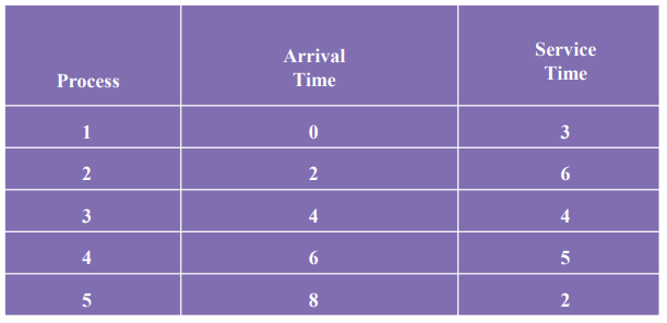 FCFS : ((0+3)+(1+6)+(5+4)+(7+5)+(10+2))/5 = 43/5