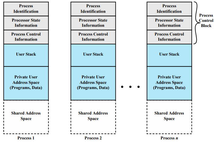 - 프로세스 테이블 엔트리(OS가 프로세스를 관리하는데 필요한 거의 모든 정보들) 관리