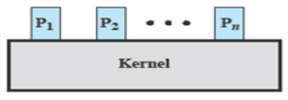 - 커널 코드를 프로세스로 만들지 않고 그냥 실행, 유저 프로그램은 프로세스로 만들고 실행