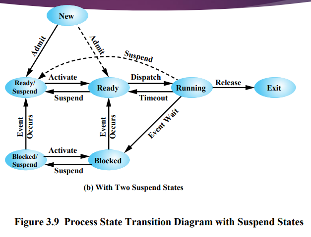 - Ready to run swapped = ready/suspend : 메모리 안에 공간이 없을 때