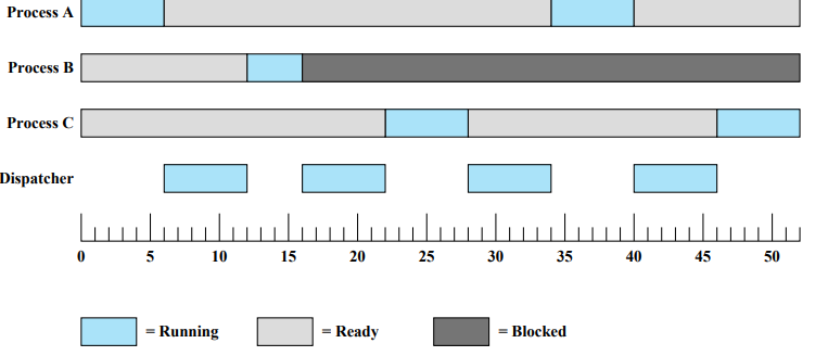 - Blocked : I/O 작업이 끝날 때까지 기다린다. CPU를 줘도 실행할 수 없다.