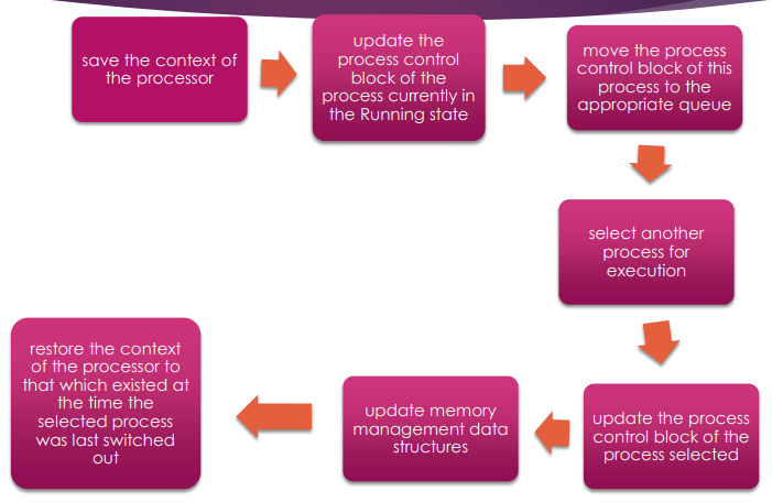- PCB의 Process Control Information(실행하고 있는 프로세스를 관리하기 위해 OS가 필요한 정보) 정보를 업데이트한다.