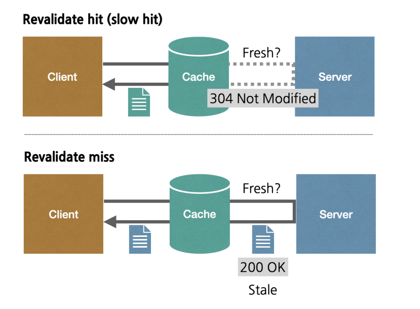 캐시는 revalidate를 수행할 수 있다. Cache에 있는 파일이 최신 파일인지를 검증한다.