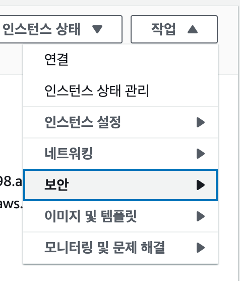 IAM 역할의 정책을 적용하고 싶은 ec2 인스턴스에 들어가 작업 -> 보안 -> IAM 역할 수정 페이지로 들어간다.