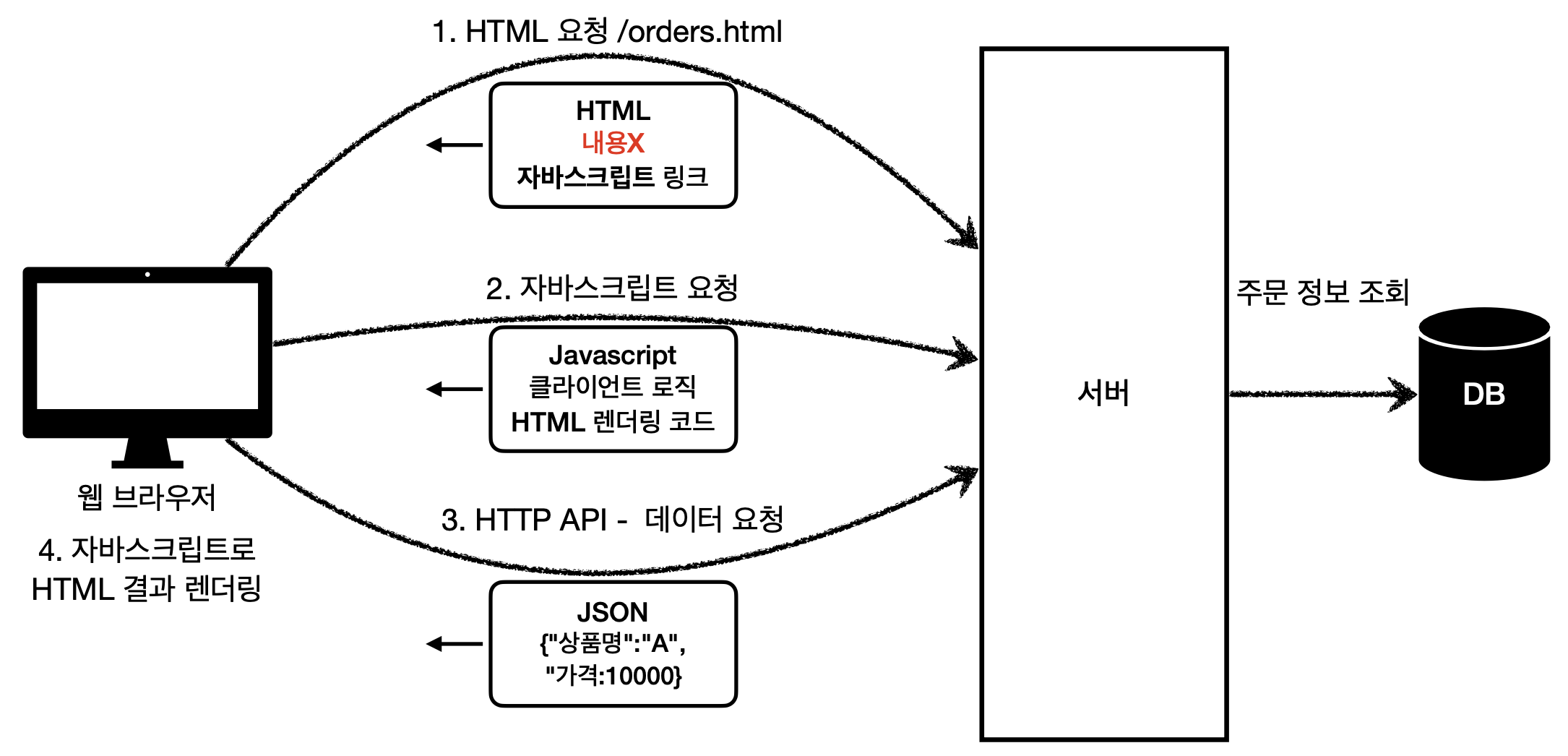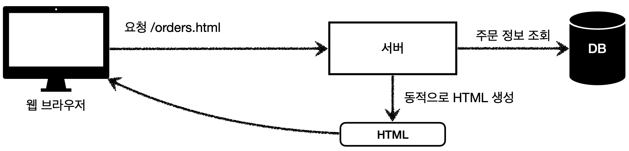 - HTML 최종 결과를 서버에서 만들어서 웹 브라우저에 전달
