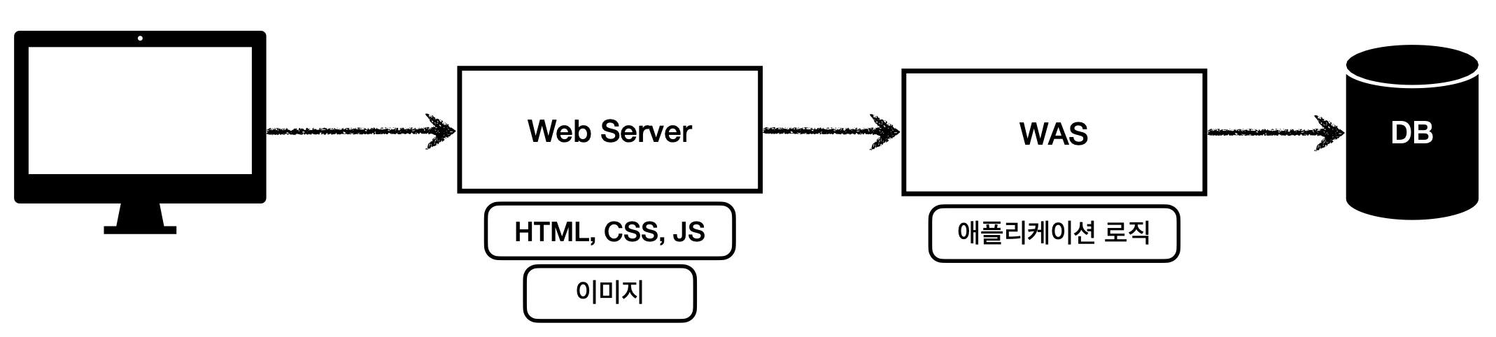 - WAS와 DB만으로 구성이 가능하지만 WAS가 너무 많은 기능을 담당