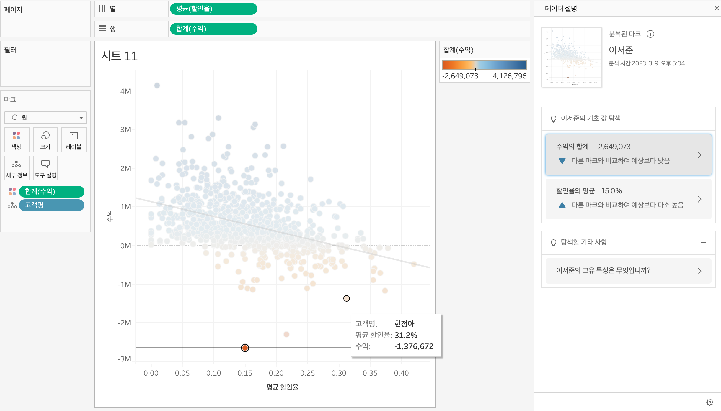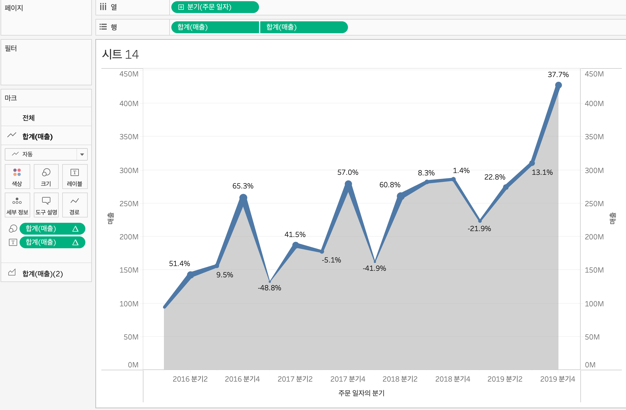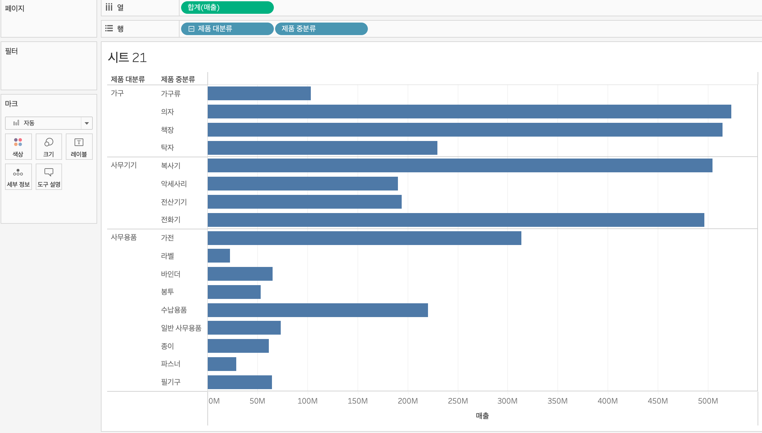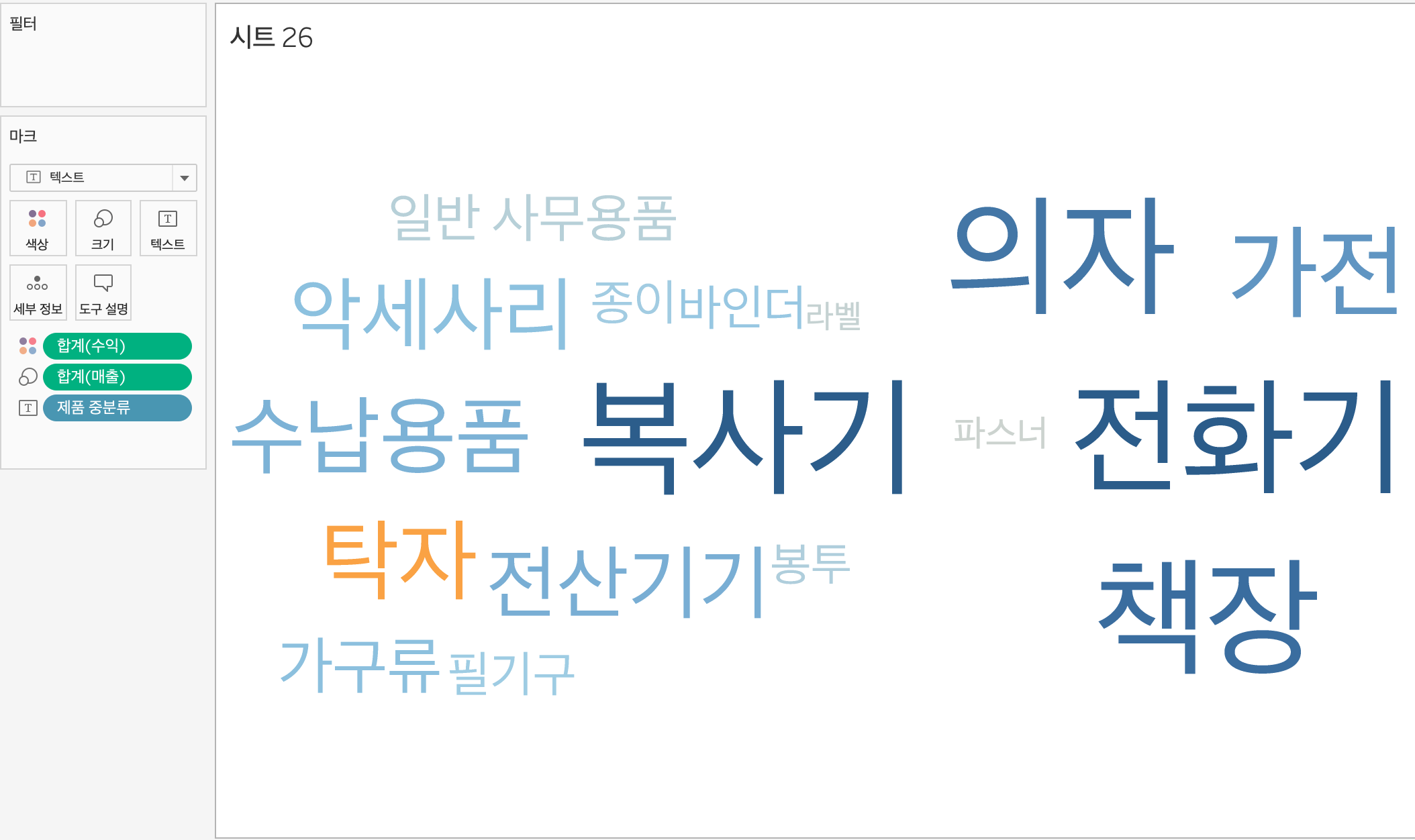 커맨드 키를 누르면서 매출을 색상에 드래그하면 시각화하기 좋게 표현할 수 있다.