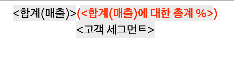 합계(매출)을 오른쪽 클릭해서 서식에 들어가 백만단위로 바꾸면 저렇게 표현할 수 있다.