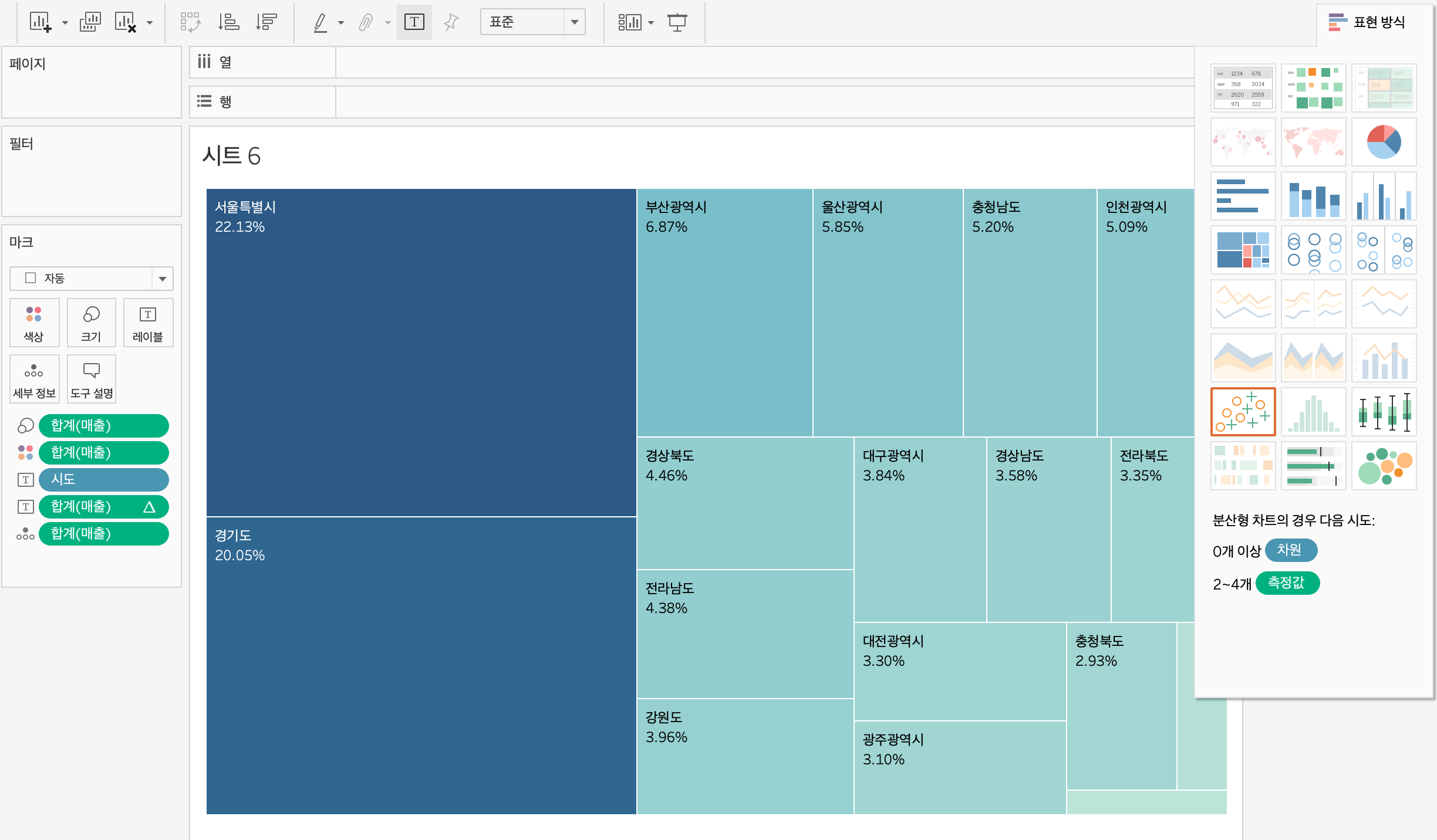 시도 와 매출을 동시선택 -> 사용가능한 표현방식이 뜬다
