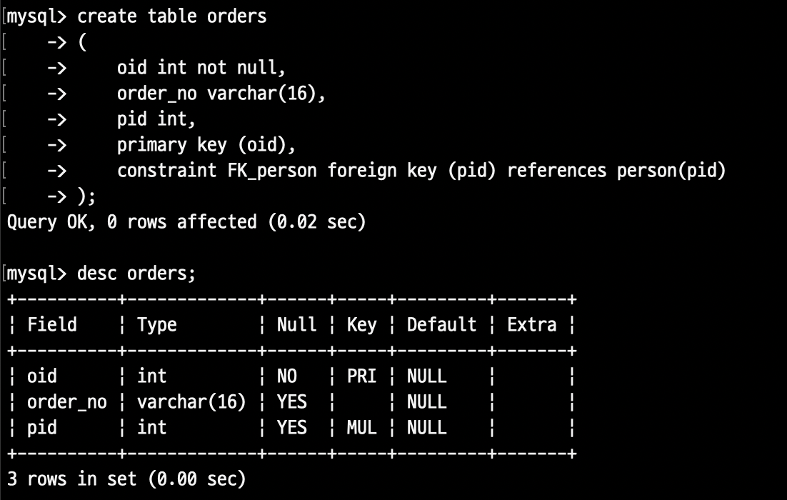 CREATE TABLE에서 FOREIGN KEY를 지정하는 경우