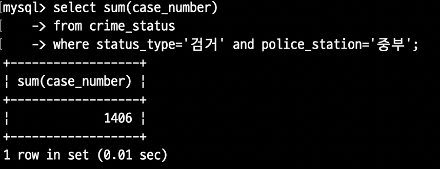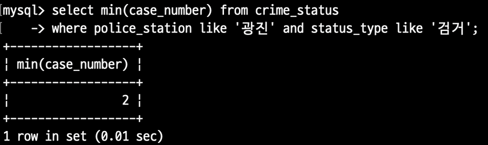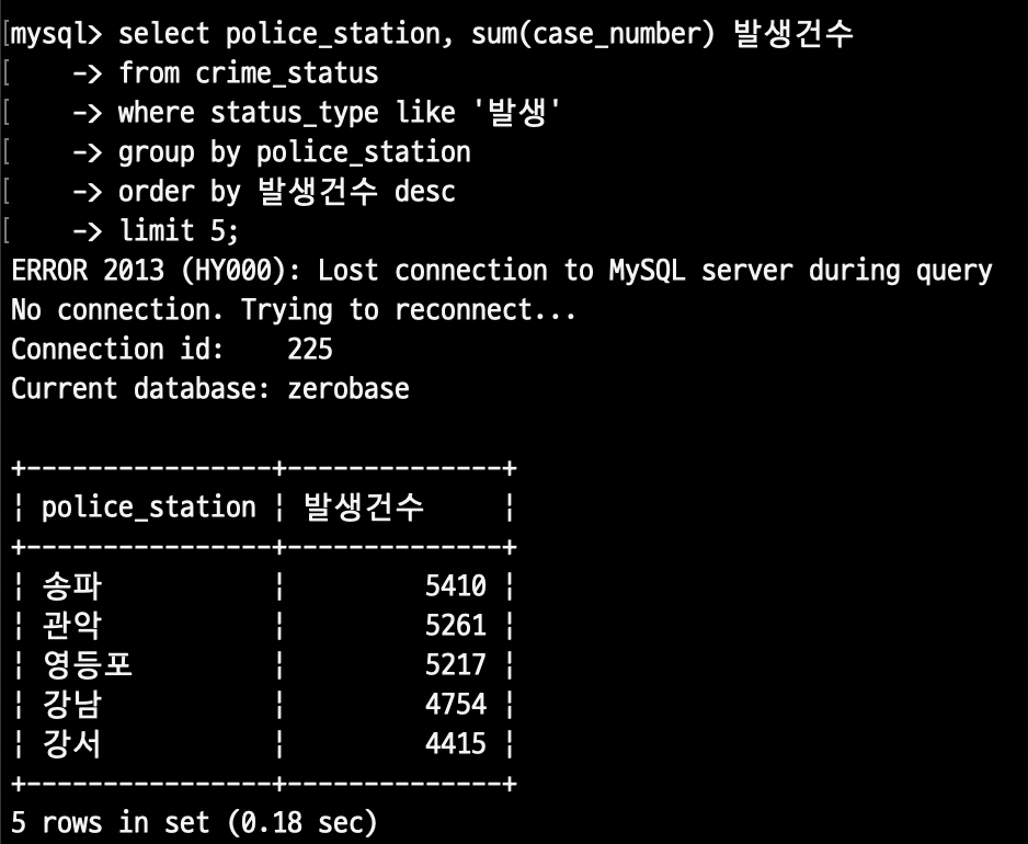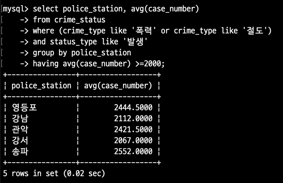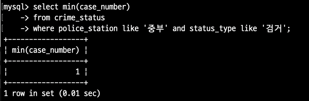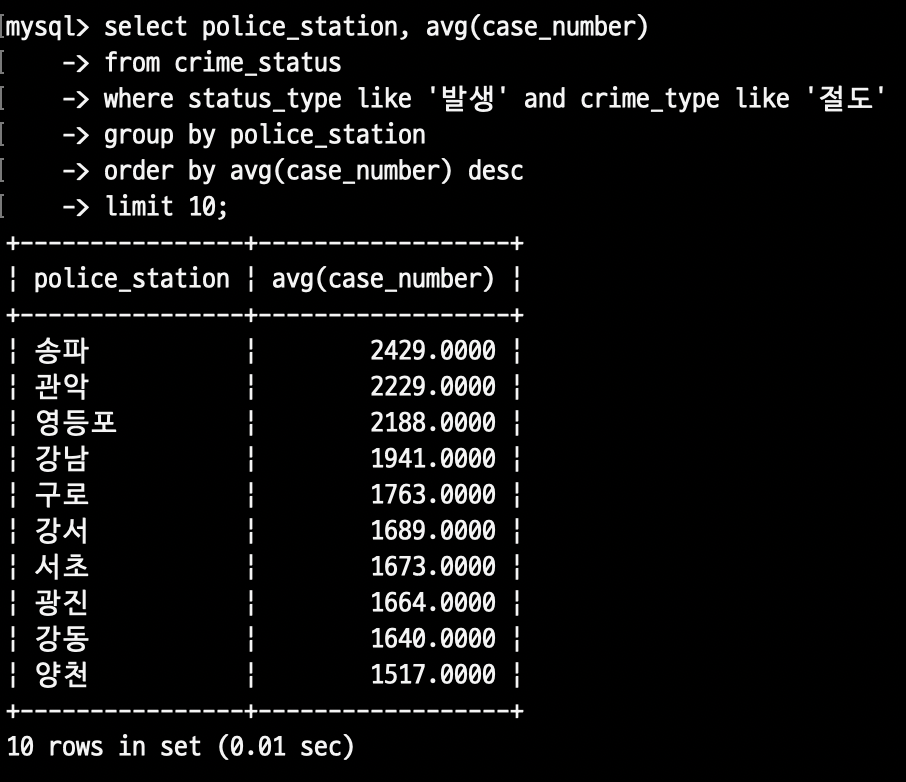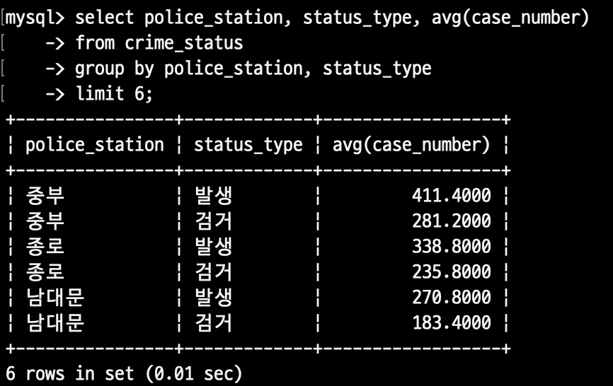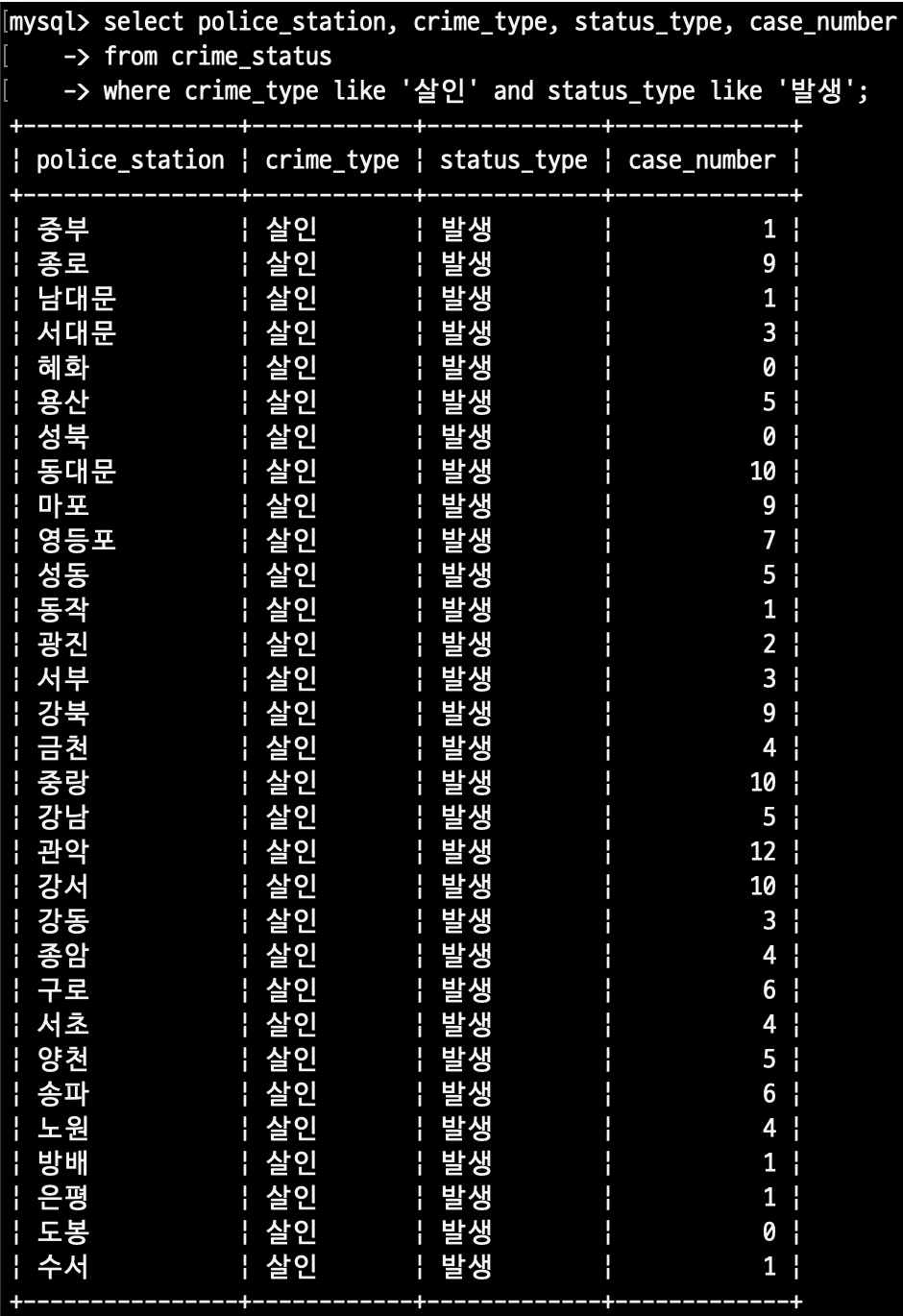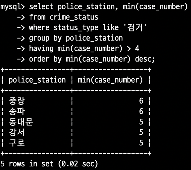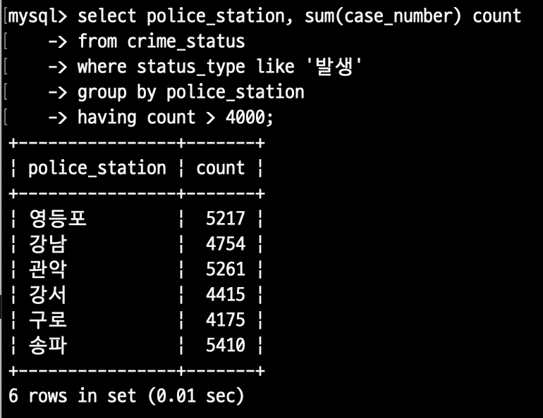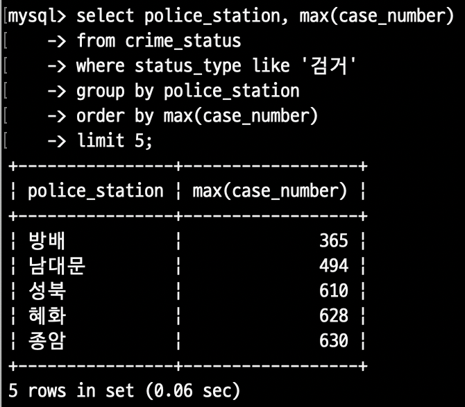 crime_status에서 경찰서별로 그룹화하여 경찰서 이름을 조회