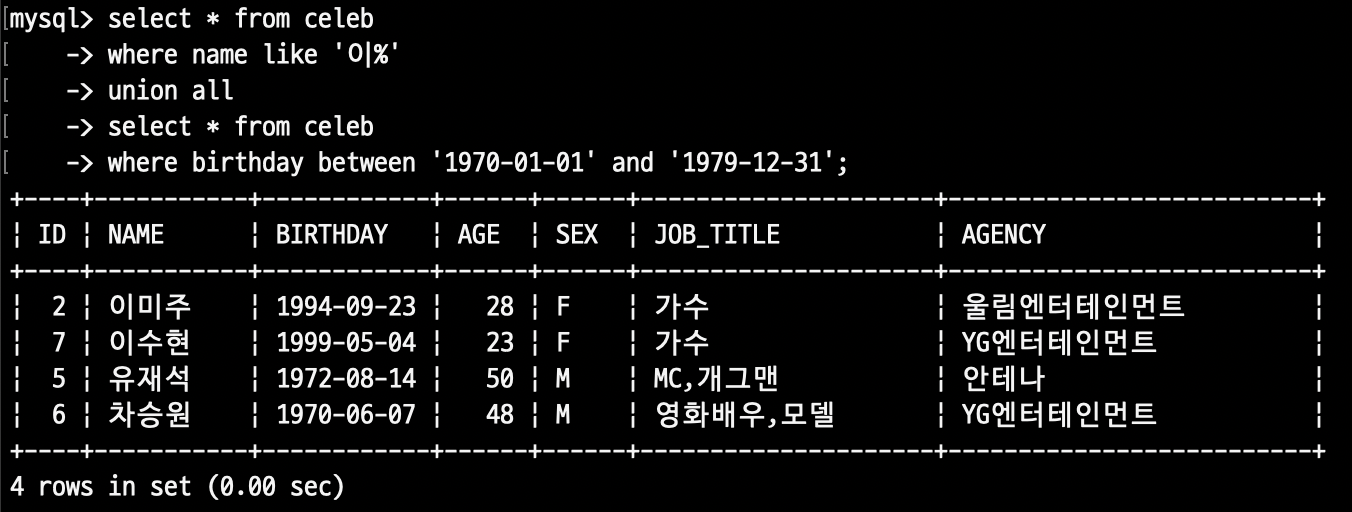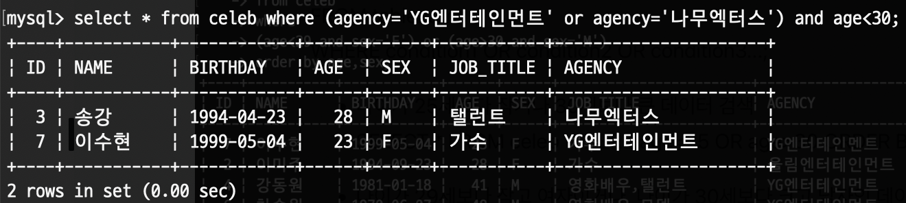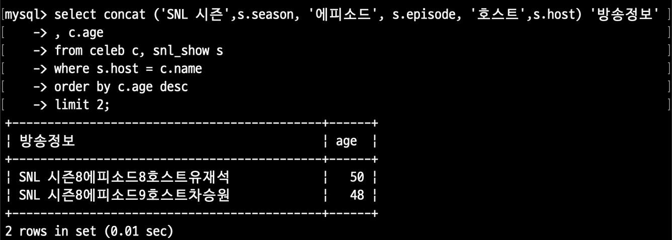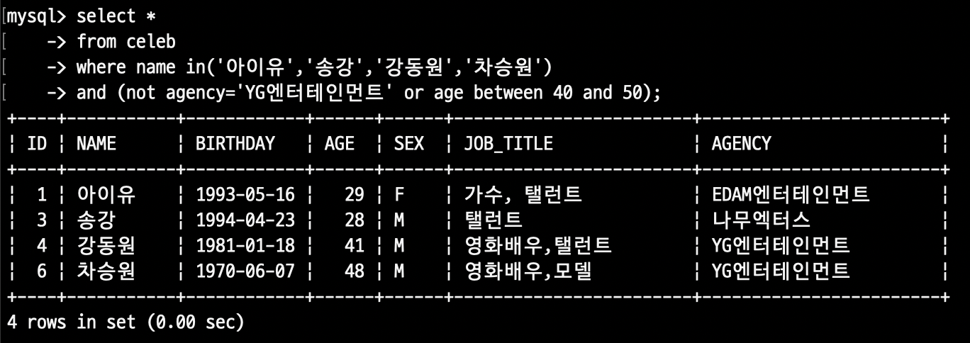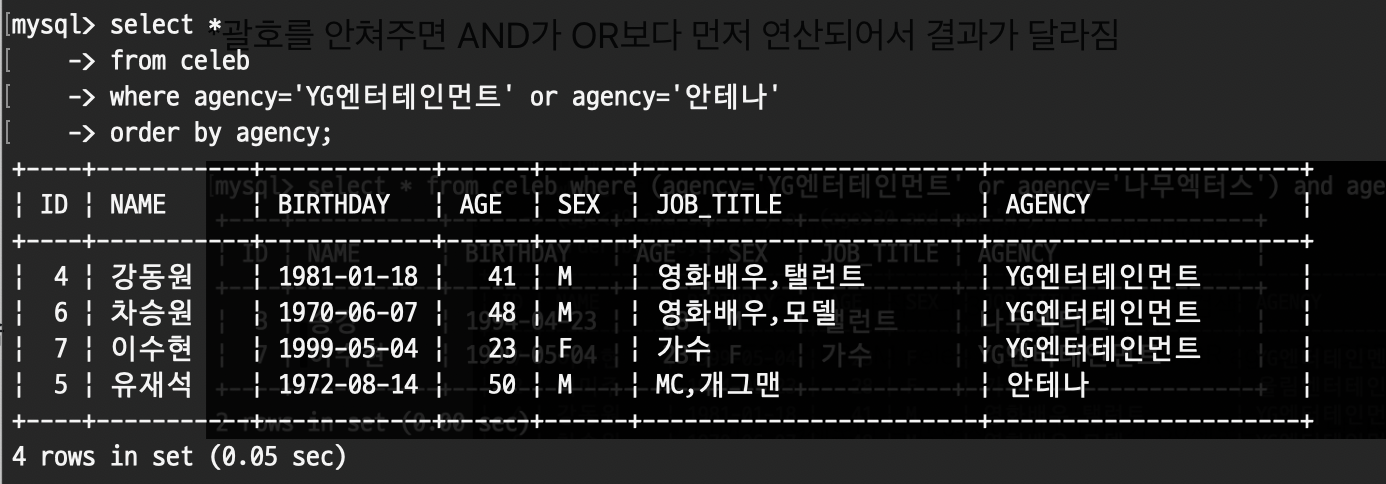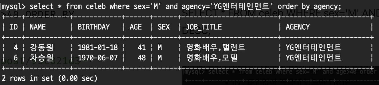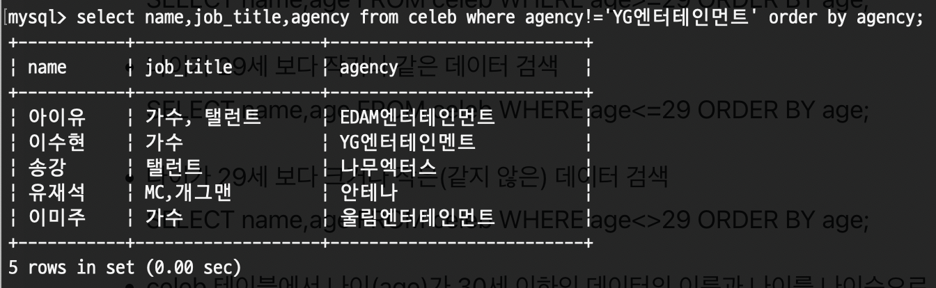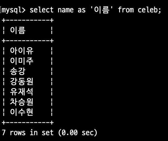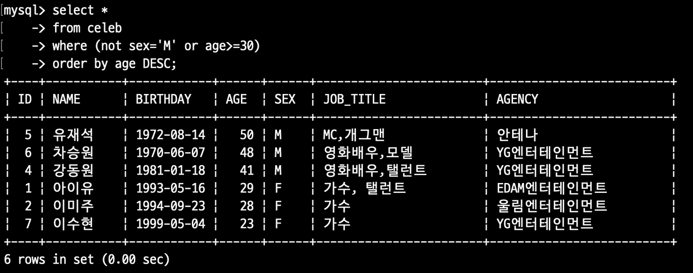 celeb 테이블에서 이름과 나이를 나이순으로 조회