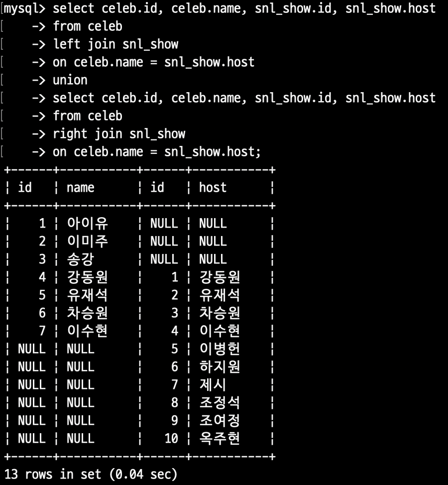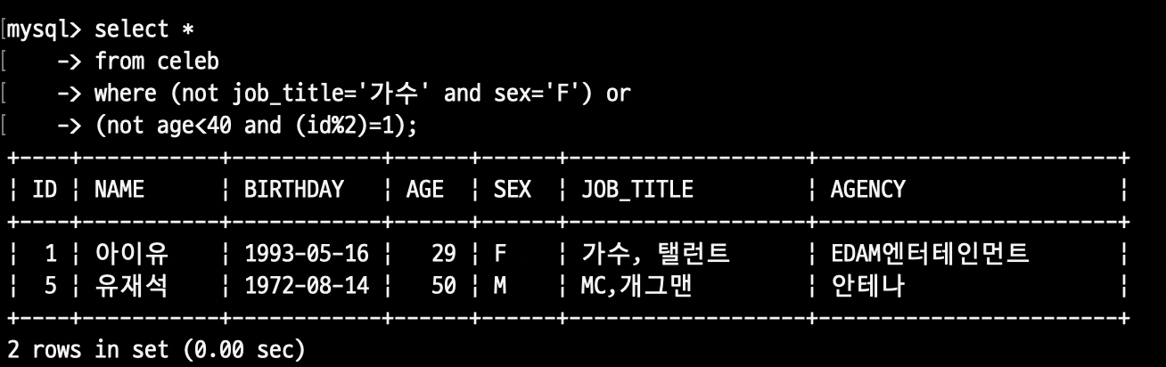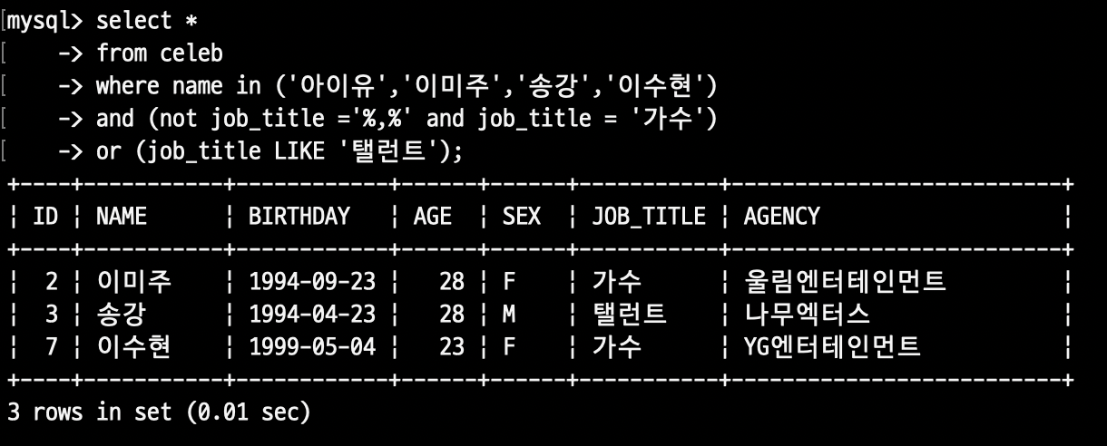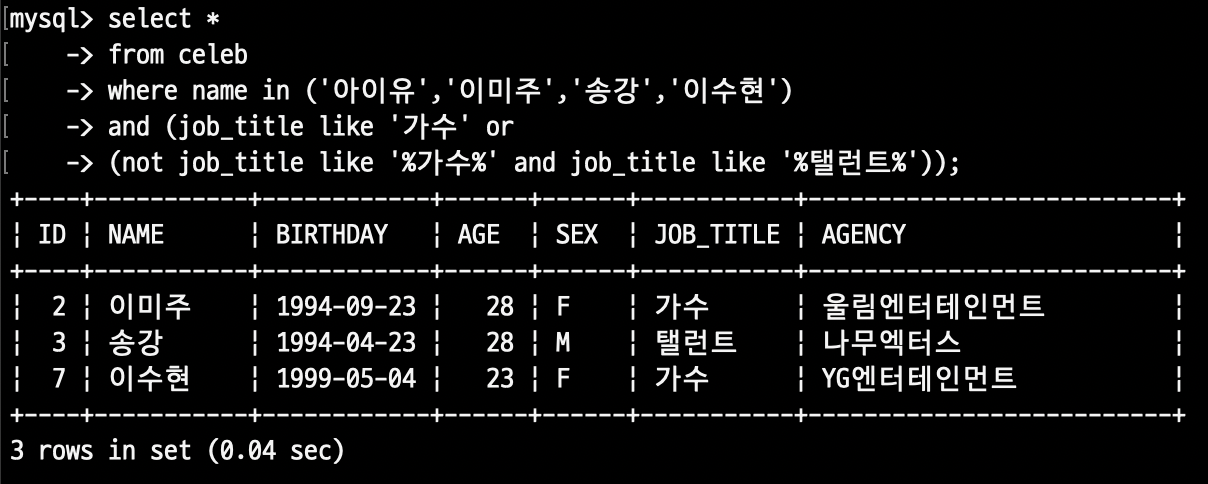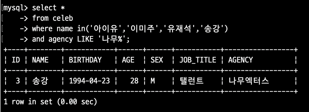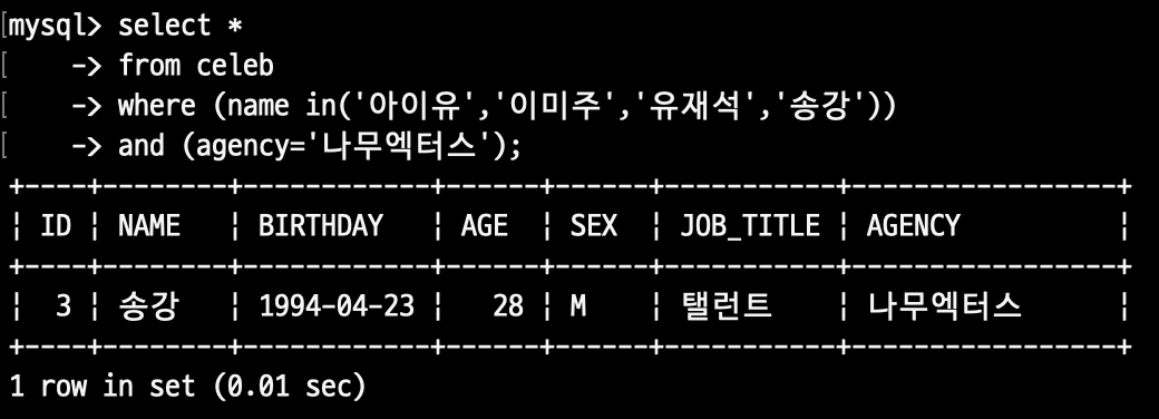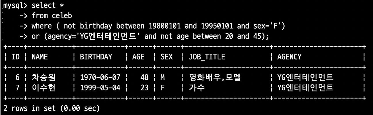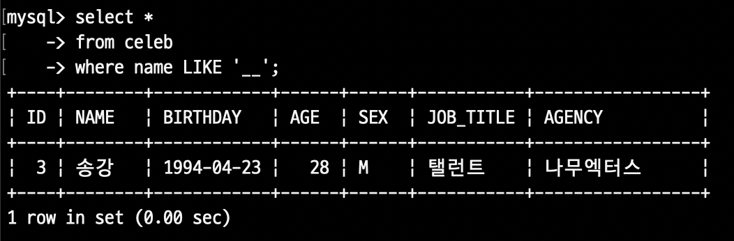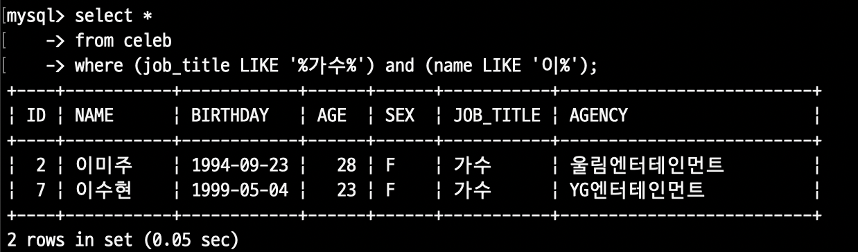 celeb 테이블에서 이름과 나이를 나이순으로 조회