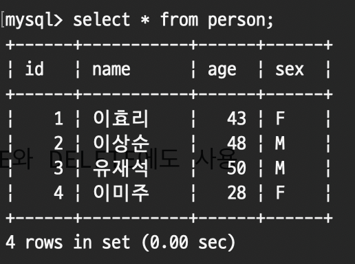 person 테이블 내의 이름,나이,성별 데이터를 조회