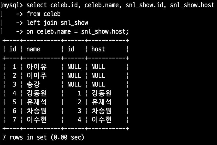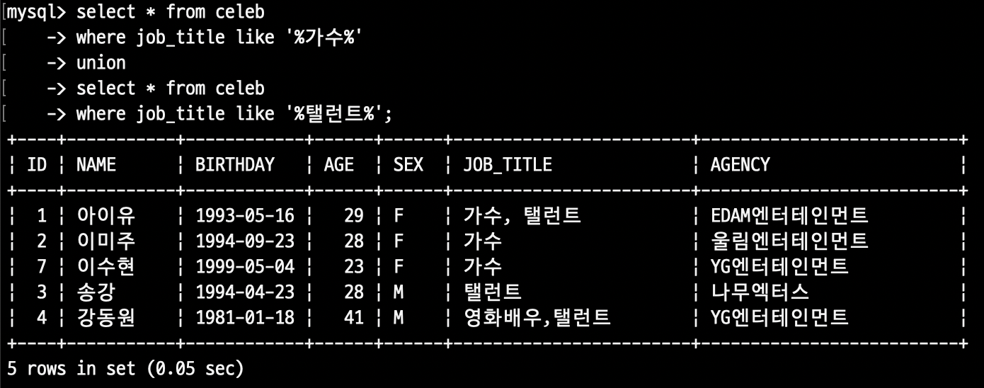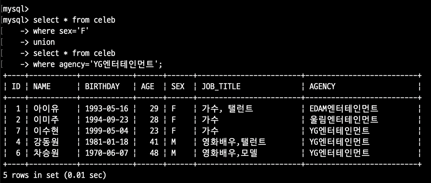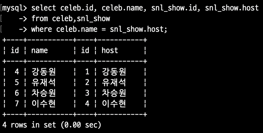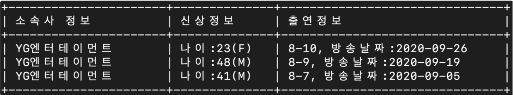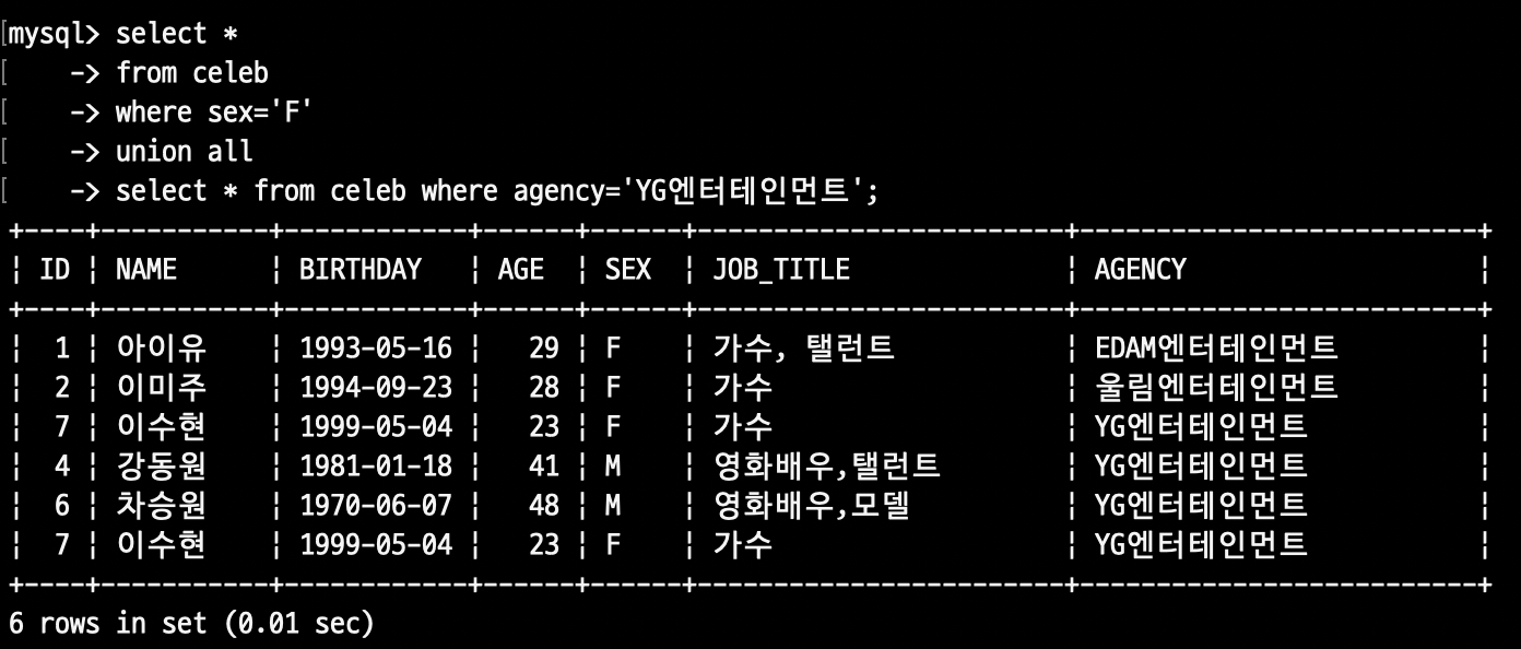 테이블 내의 모든 컬럼에 대한 데이터를 조회