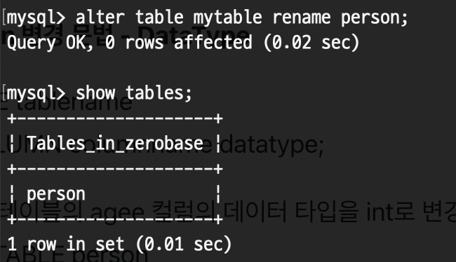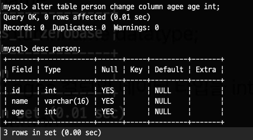 CHANGE COLUMN old_columnname new_columnname new_datatype;